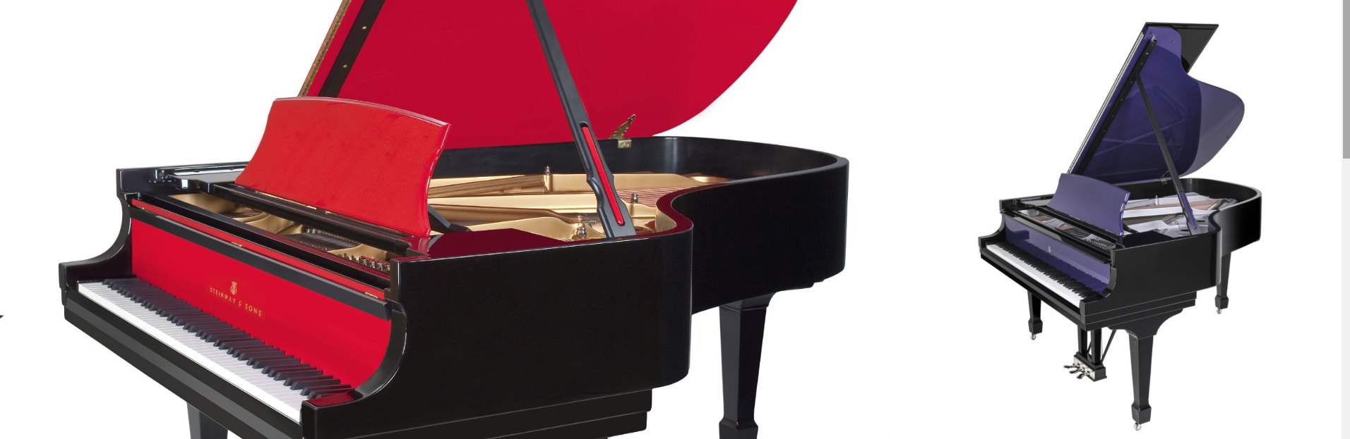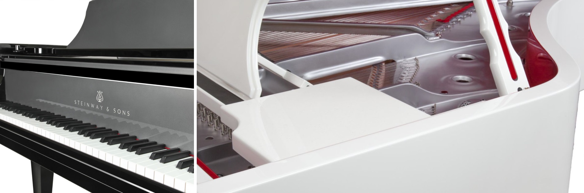 Яскраві червоні акценти вдихають характер у цей чорний рояль. Завдяки простій зміні кольору внутрішньої частини кришки, пюпітра і підставки для кришки, інструмент перетворюється з класичного на сучасний. Для замовлення доступний весь спектр кольорів.
