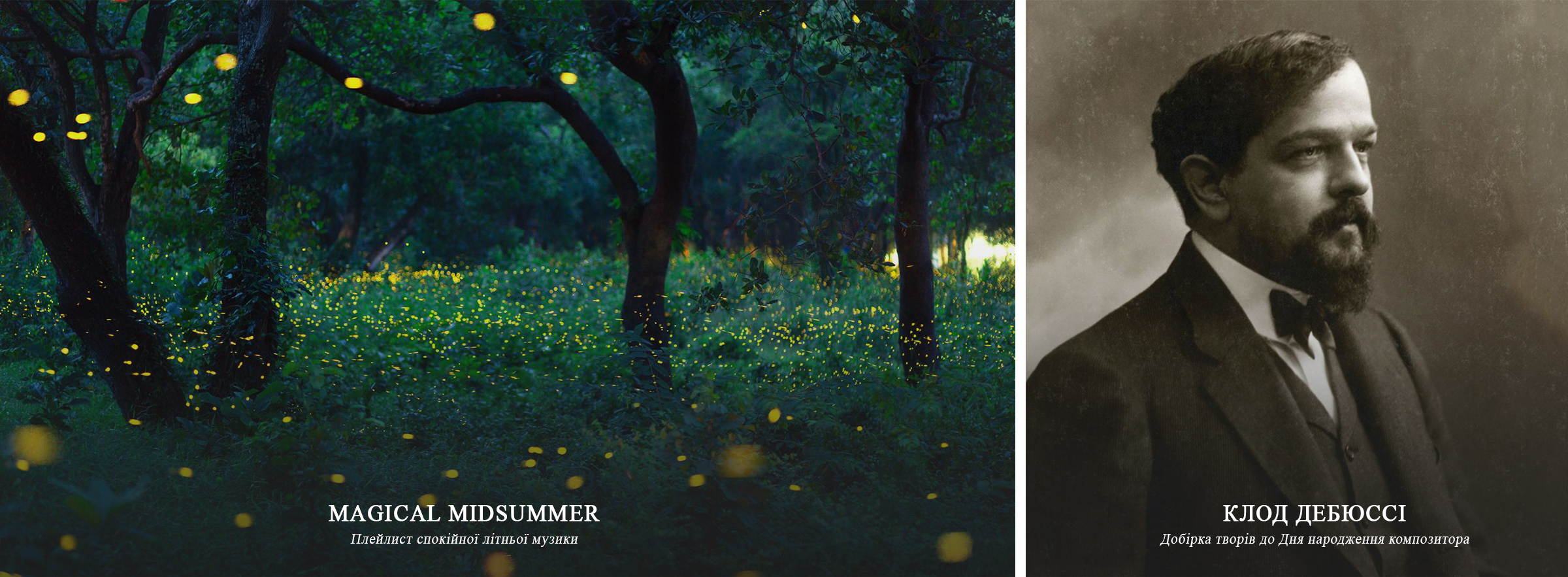 Також цього місяця ми представляємо новий тематичний плейлист, темою якого є чарівний вечір у пору середини літа. Місячне сяйво, блискітки світлячків, легкий подув прохолодного вітру – і на якусь мить час зупиняється. У цьому плейлисті представлені переважно класичні композиції, звичайно ж, музика Фелікса Мендельсона, але також і низка творів, які можуть стати для Вас відкриттям.