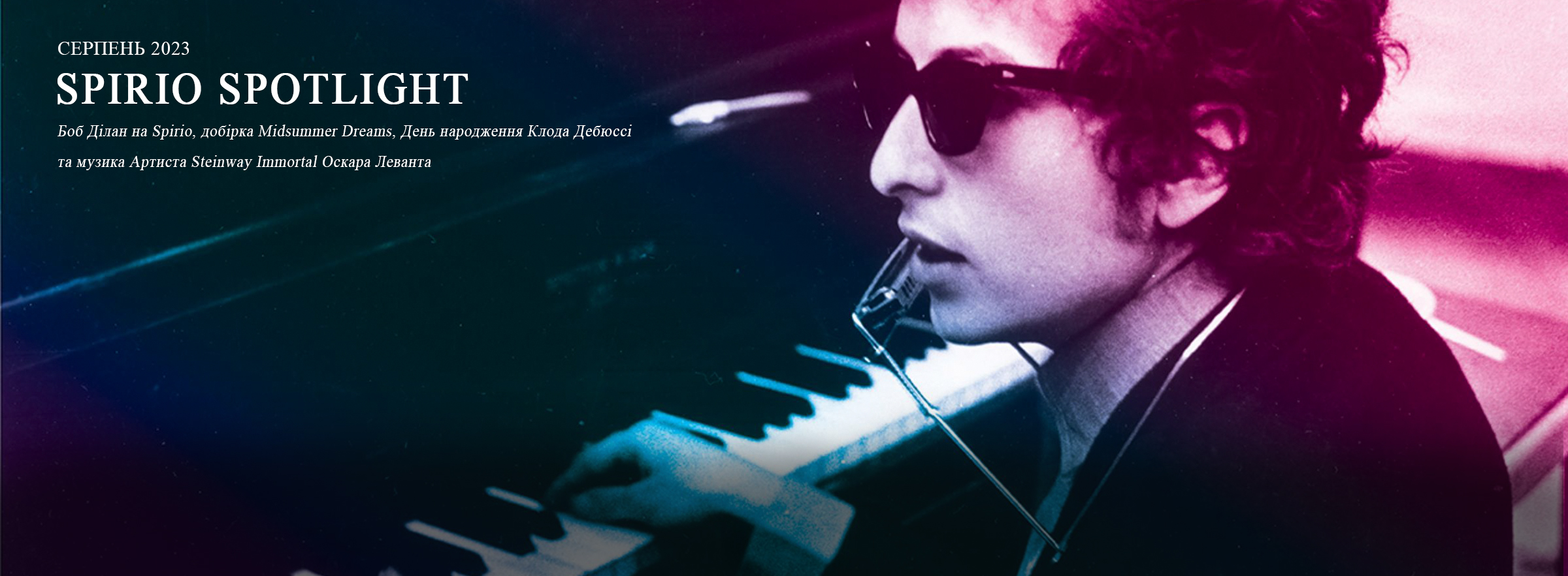 Цього місяця SPIRIO вітає Боба Ділана – піонера музики, чиї твори були творчо аранжовані для сольного фортепіанного виконання. Місце артиста в американській музиці та культурі добре відоме, його творчість вплинула на декілька поколінь. В нашій серпневій добірці представлені такі знакові твори Боба Ділана, як Blowin ‘in the Wind й The Times They Are A Change, та багато інших композицій.